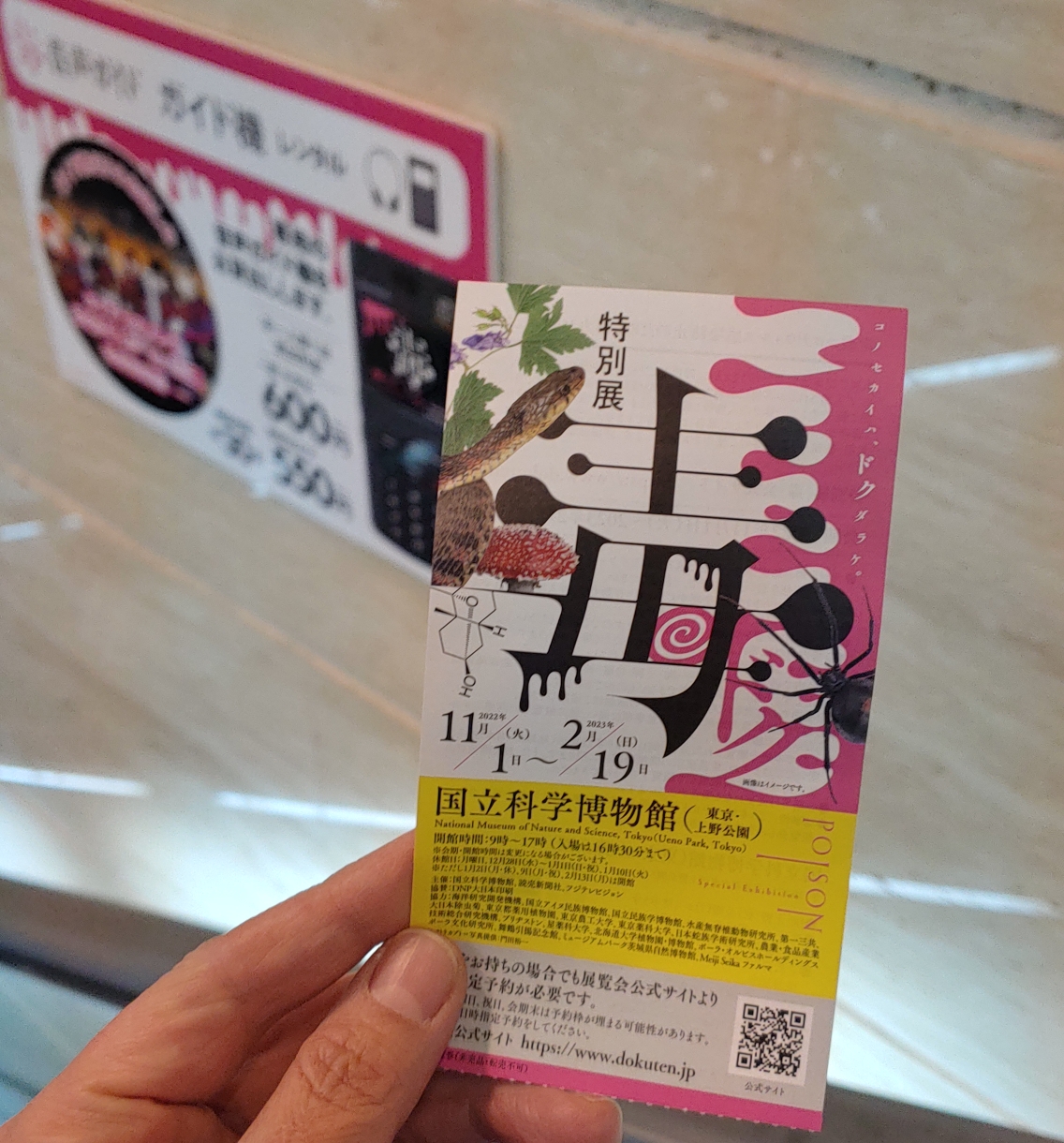 식단 먹고 조금 쉬고 다시 전철 타고 이번엔.도쿄 국립 과학.박물관 「독」 특별전 관람 갔습니다!!! 티켓 한장에 2000엔인데 인기 폭발이라 오후 5시 예약하고 가서 사람 없겠지 했는데 미어터지더라구요 ㅋㅋㅋ 연인들도 많고 가족들고 있고 다들 「독」에 흥미 폭발!!! 사람의 죽음과 연관되어서 그런지 다들 흥미진진 ㅎㅎㅎ